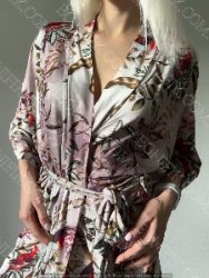 Жіночий халат виконаний із якісної віскозної тканини дикорованої квітковим принтом.