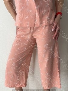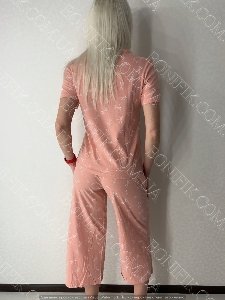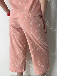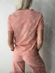 Піжама із ніжно-персикового бавовняного полотна, складається з футболки і бридж.