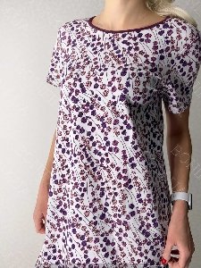Має вільний силует, довжиною вище коліна, з коротким рукавом. Декорована малюнком " гілок лаванди" та кантом бардового кольору.
