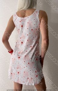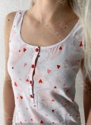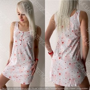 Нічнушка білого кольору з малюнком сердечок, спереду є застібка на гудзики. Сорочка дарує незвичну свободу рухів і легкість при носінні.