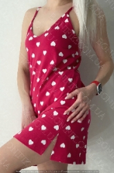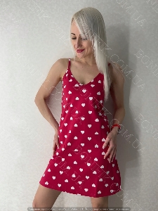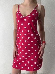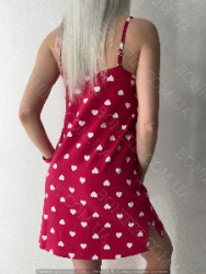 Нічнушка виготовлена з бавовни червоного кольору з додаванням еластану. Має напівприталенний силует, на тонкій бретелі, довєиною вище колін, з V-подібним вирізом.