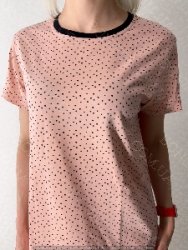 Родзинкою нової колекції є візерунок в "чорний горошок. По краю, виріз для горла та бретелі прикрашені чорною окантовочною тканиною.