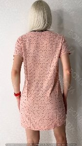 Нічнушка з якісної бавовни персикового кольору. Виріб приталеного силуету, з короткими рукавами, довжина вище колін.