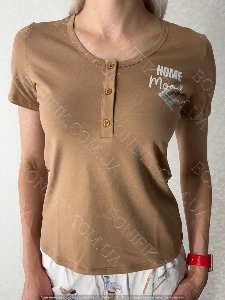 На футболці — акуратна застібка на гудзиках і напис Home Mood, яка підкреслює домашній затишок.