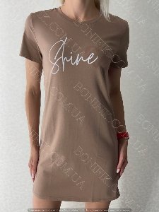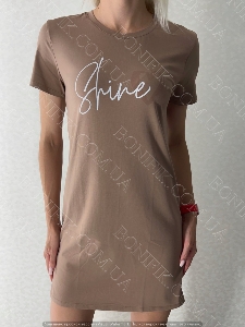 Лаконічний дизайн доповнений стильним принтом на грудях — написом "Shine", яка додає сучасного акценту і робить образ яскравим навіть в домашній обстановці.