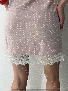 Ніжний персиковий відтінок в поєднанні з акуратним принтом в мілкий горошок створює романтичний настрій та робить образ особливо привабливим та жіночним.