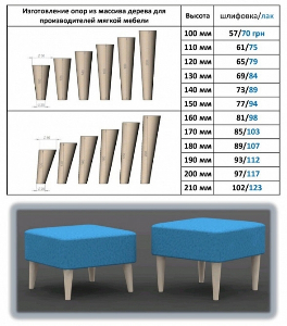 Изготовление опор (ног) под заказ из дерева - ясень . Покрыты акриловым лаком . Срок изготовления от 3 дней в зависимости от количества . При заказе от 700 гривен доставка по Харькову бесплатно . Возможно отправка новой почтой , оплата наложенным платежомПопулярные объявления