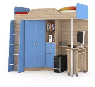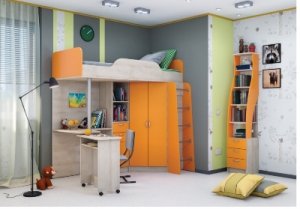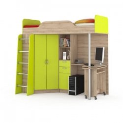 Данная кровать использует максимально рационально место в квартире или доме, особенно это актуально для малогабаритных квартир. А благодаря тому, что кровать находиться на втором этаже – этот комплект подарит Вашим детям много радостных эмоций и новых идей для игры.
