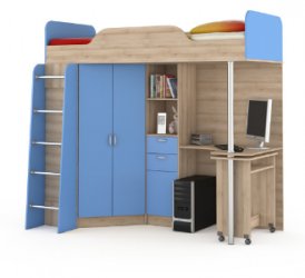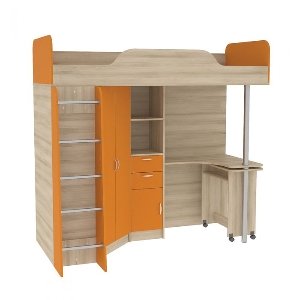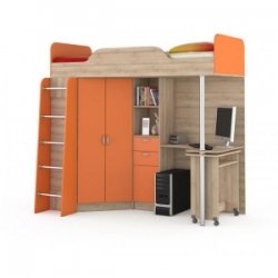 Детская Двухэтажная кровать с раскладным столом, пеналом и шкафом для детей старше 5-ти лет.Кровать чердак КЧО 113 – это многофункциональный комплекс состоящий из шкафа с полками и штангой для плечиков, пенала с выдвижными ящиками и тумбами и раскладного стола.