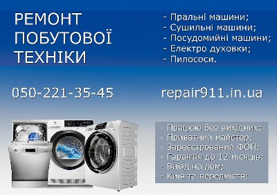 Ремонт Пральних Сушишильних, Посудомийних машин. приватний Майсте