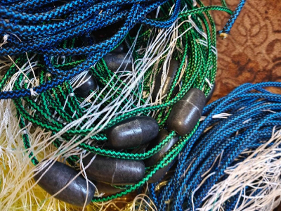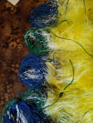Кукли, полотна, шнурі, поплавки, грузи, та готові снасті