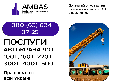 Послуги оренди автокрана 90т, 100т, 160т, 220т, 300т, 400т, 500т