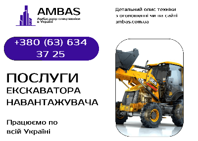 Вітаємо в АМБАС. Ми готові допомогти з вашою роботою всього в один клік чи дзвінок. Все для того, щоб ви зекономили свій час.Готові надати вам послуги з оренди екскаватора навантажувача, також, на ваш запит надаємо іншу в оренду техніку через наших партнерів, яка потрібна для вашої роботи.