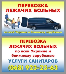 Перевозка лежачих больных по всей у Украине и за рубеж. - Санитары перевезут больного из одного медицинского учреждения в другое, переместят больного с любого этажа квартиры - дома в транспорт для дальнейшей доставки пострадавшего в больницу, или в иное учреждение..., так же нас не затруднит транспортировать больного на вокзал или в аэропорт, а так же в гос учреждение для решения Ваших административных вопросов и т.д. Будьте здоровы!!! т. (068) 923-23-63 т. (093) 571-91-07Популярные объявления