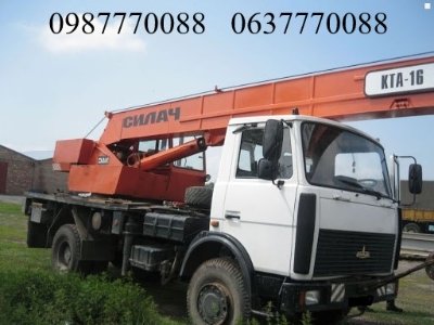Аренда автокрана КТА-16, грузоподъемностью 16 тонн и с вылетом стрелы 21,7 метр на базе автомобиля МАЗ. Как для промышленного, так и для индивидуального строительства по г. Каменское и всей Днепропетровской области. Возможна работа без выходных.У нас в наличии СВОЯ техника: автокран, экскаваторы, самосвалы, тентованный полуприцеп.