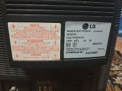 Продам телевизор LGТип: ЭЛТ-телевизор с плоским экраном Диагональ: 21" Формат экрана: 4:3 Стереозвук: есть Прием сигнала Поддержка стереозвука NICAM: Енет Поддержка телевизионных стандартов: ЕPAL, SECAM, NTSC Количество каналов: 100 Телетекст: нет Поддерживаемые форматы входного сигнала: 480i, 576i Функции Таймер сна: есть Защита от детей: есть Экранное меню на русском: есть Изображение Оптимизация изображения: есть Звук Мощность звука: 14 Вт (2*7 Вт) Акустическая система: два динамика Объемное звучание: есть Интерфейсы Входы: AV x2, аудио x2 Выходы: AV Разъемы на передней/боковой панели: AV.