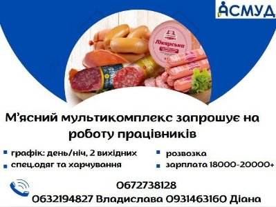М'ясний мультикомплекс запрошує на роботу працівників:- маркувальників;
