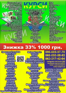 Навчання на курсах перукар манікюр і педикюр, перукар, візажіст - стиліст, імиджмейкер - стиліст, нарощування вій, тату, маркетинг, логістика, корекція брів вій, піццеола, тесля, токар, крою та шиття, телемайстер, автослюсар, слюсар ремонтник, слюсар інструментальник, слюсар монтажник, слюсар збирач , автоколоріст, муляр, аніматор, грумінг, шугарінг, татуаж, зборщик меблів, супервайзер, облицювальник плиточник, бухгалтер, адміністратор ресторанного бізнесу, адміністратор готельного бізнесу, секретар, дизайнер меблів інтер\'єру, ландшафтний дизайнер, слюсар сантехнік, акумуляторникк, асфальтобетонщик, холодильщик, гипсокортонщик, стропальник, фотограф, діетолог, пилорамник, прогаміст, бармен, озеленювач, бляхар, шліфувальщік, плодоовочевод, гончар, офіціант, мерчендайзер, годинникар, ораторської майстерність, туроператор, охоронець, кухар, пекар, барист, продавець, флористика, сушіст, взуттєвик, обвальщик м\'яса, декоратор, кінолог, пескострумнник, фрезерувальник, газорізальник, зуборізальник, психолгія, кондитер, масажист, ювелір, косметолог, електрик, електрослюсар, арматурник, маляр, електрогазозварник, штукатур.Популярные объявления