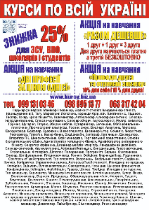 Курси електрик, кухар, перукар, масажист, зварник, слюсарПопулярные объявления