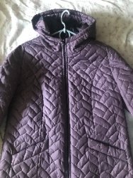 Продам:1) Куртка женская зима размер 46-48, ниже колен, цвет бордовый с черным декором, на молнии, с капюшоном и 2-мя карманами спереди. Новая. Фабричный Китай. 250 грн.
