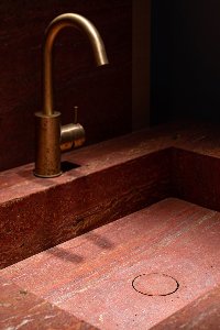 Революционный красно-коричневый, с цветовыми колебаниями от кирпичного до насыщенного алого, травертин PERSIAN RED иранского происхождения поможет создать особенные интерьеры в вашем доме и подчеркнет смелость натуры хозяина решившегося на такой интерьер. Материал подходит для декорации фонтанов и каминов, настенных мозаичных панно, облицовки лестниц, пола и стен, изготовления столешниц, моек, подоконников. Травертин образуется под водой, в местах выхода минералов на поверхность, он на 100 % экологичен, поскольку в нем отсутствует радиационная составляющая, не говоря уже о других вредных веществах. Несмотря на то, что этот материал достаточно рыхлый, его прочность можно даже сопоставить с мрамором и гранитом, а видимая пористость может ввести в заблуждение, но поры не являются открытыми и не способствуют продвижению влаги внутрь структуры камня. Отсюда следует морозоустойчивость травертина – нет влаги внутри камня, т.е. нечему разрушать его во время морозов. Материал по преимуществу имеет южное происхождение и по этому у него теплые нежные оттенки, которые привлекают к себе внимание и возникает желание провести по нему рукой. После обработки камень будет играть всеми оттенками своего цвета.Столешницы от 2500 грн/м.п