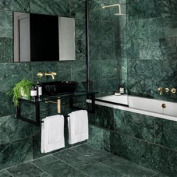 Indian Green – камень изумительного зеленого цвета, по глубине и красоте напоминает малахит, но с другим узором. Рисунок мрамора больше напоминает волны под закатными лучами солнца. При ярком освещении он вспыхивает, становится нежного салатового оттенка, в то же время сохраняя загадочность в тени. Глянцевая поверхность создает неповторимую игру бликов, завораживая и очаровывая. Зеленый цвет Индиан Грин умиротворяет и гармонизирует пространство. У большинства людей он ассоциируется с природой, расслабляет и создает ощущение безопасности. Особенно уместен мрамор на кухне. Помимо стильного вида, отделка такого цвета настраивает на приятную беседу за вкусным ужином.Спокойный и многогранный, Indian Green словно создан для спальни. Его не должно быть много, ведь цвет довольно насыщенный. Небольшое панно или отделка стены над изголовьем придадут изысканности и роскоши интерьеру. В гостиной уместно создать акценты из природного камня. Например, сделать камин и подоконник из мрамора глубокого зеленого цвета. Подчеркнут его красоту светлые стены и пол спокойного оттенка.