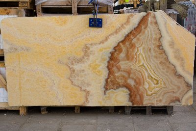 Arco Iris – желто-оранжевый италийский камень, пропускающий свет. Рисунок состоит из светло-желтых и ярко оранжевых волнистых жил, с разной шириной цветовых слоев. Прекрасно смотрится в обработке «антик».Камины от 70 000 грн