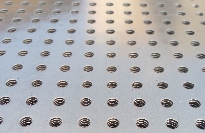Лист алюминиевый перфорированный Rv3-5 1х1000х2000мм, изготовлен из алюминиевого деформируемого сплава 3003-H14 (АМцН2) , перфорация по шестиграннику ф3 мм, шаг 5 мм. Без покрытия, возможное анодирование АН21, АН15, покраска в цвета RAL