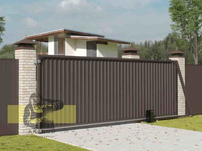 Ворота из профнастила распашные, установка в комплексе с еврозабором. Мы также являемся производителями бетонных заборов, поэтому в комплексе Вам будет гараздо дешевле.