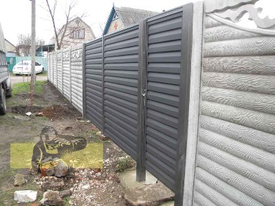 Розпашні ворота з хвірткою (врізною або окремою). Розпашні ворота з ламелями ЖАЛЮЗІ з вбудованою хвірткою.