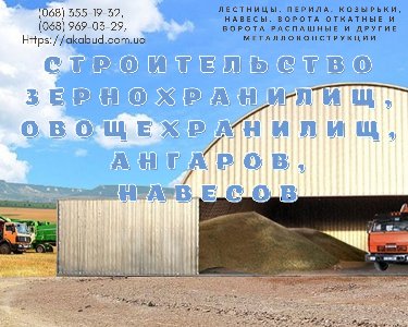 Купить Навес. Строительство зернохранилищ, овощехранилищ, ангаровКомпания «Акабуд» имеет многолетний опыт изготовления и строительства быстровозводимых зданий различного типа и назначения. В числе наиболее востребованных конструкций находятся арочные ангары. Они широко используются для производства, торговли, хранения техники и материалов и других целей.