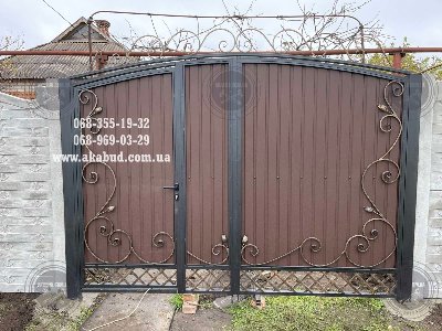 Ми компанія Акабуд спеціалізується на виробництві та встановленні розпашних воріт з профлиста з елементами ковки та бетонним парканом!Ми пропонуємо унікальні, індивідуально розроблені ворота, які поєднують в собі функціональність і естетичний дизайн. Ворота з профлиста забезпечують високу міцність і надійність, а елементи кування надають їм вишуканості та стильності. Крім того, ми можемо запропонувати бетонний паркан, який буде ідеально поєднуватися з вашими воротами, створюючи єдиний дизайн.