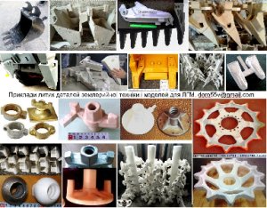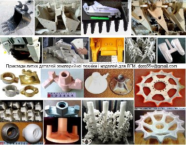 Колосники, деталі будівельної опалубки, решітки печей, деталі печей, облицювальні плити. Для каналізаційних трубопроводів. Труби та фасонні деталі для трубопроводної арматури, теплообмінників, вентилі та інші деталі розподільчих пристроїв, фланці. Виготовлення моделей на 3D принтері та вирізування з пінопластів на 3D фрезері. Ливарники виконують художні виливки із чавуну, сталі, алюмінію, мідних сплавів, серійні та разові деталі. Моделі для лавки, ліхтаря, виливки стовпчиків, ґрат, огорож та технічного лиття металу пропонує замовник. Приймемо замовлення на чавунні ґрати, огорожі, барельєфи, хвіртки, ворота, стовпчики, ліхтарі, лавки, таблички, гантелі, гирі. Разові моделі ріжуть з пінополістиролу на 3D-фрезерах, виготовлення прес-форм для пінопластових моделей часто виконують точним литтям. 3D-принтер та 3D-фрезер виготовляє полімерні, пінополімерні, пінопластові та пластмасові вироби, деталі, запчастини, також за 3D-виготовленими моделями швидко відливають виливки з різних металів. doro55v@gmail.com, т. 38-066-1457832, Влад