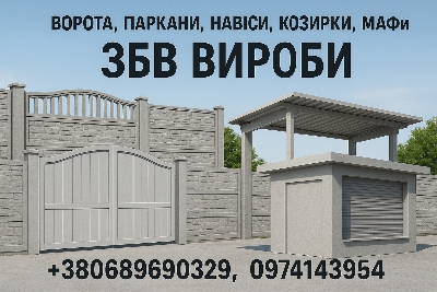 Ворота, заборы, навесы, козырьки, МАФы. ЖБИ изделия