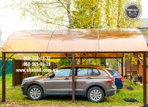 Навіси для авто, тераси, зони відпочинку; арочні, односхилі, двосхилі; полікарбонат, метал, кування. Автонавіс Кривий Ріг. Замовити, купити навіс на авто. Автомобільні навіси у Кривому Розі. Автонавіси Кривий Ріг. Виробництво навісів від компанії Akabud.