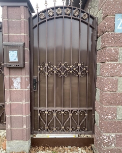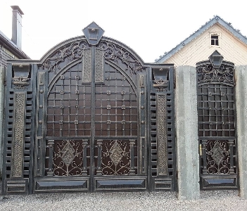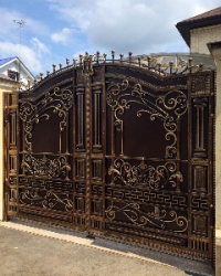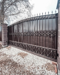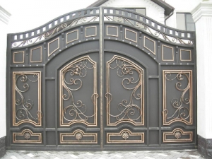 Металлические ворота в Кривом РогеМетал ворота на заказ гаражные и въездные, ровные и витые, сложные и простые, несложные и кованые металлические ворота с замечательной ковкой оригинальной в мастерском исполнении дизайнерского подхода, дорогие и дешевые бюджетные, ровные и арочные, глухие с прозрачными смотровыми решетками, гаражные в гараж а дверью, автоматические въездные во двор с калиткой, с пиками, со столбиками. Купить просто с профлиста и кованые ворота откатные, распашные, подъемные, сдвижные. Можно выбрать металл 3 мм, 2 мм, 1,5 мм, каркас и профлист, цвета, замки, задвижки. Иллюстрация работ на фото строительного сайта 004.