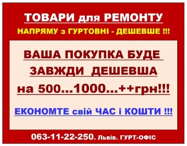 Також виконаємо Ваш запит по інших "ТОВАРАХ для РЕМОНТУ": двері, сантехніка...та інше.