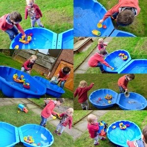- Для комфортного размещения они могут держаться за удобные борту песочнице, сидя внутри.