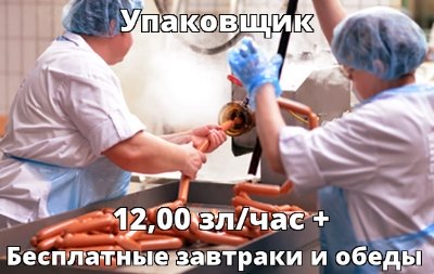 Оплата: 11,50 – 12,00 зл/час НЕТТО + Бесплатные завтраки и обеды