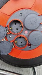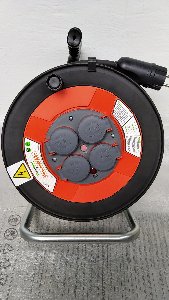 Катушка качественная турецкого производства имеет четыре розетки на 16А. с подпружиненными крышками, контакты латунь, имеется термозащита (в случае если подаётся большая нагрузка в смотанном состоянии, провод начнет нагреваться тогда защита отключит питание) кнопка сброса блокировки питания, светодиодная индикация питания, пыле и влагозащищенная (степень защиты IP.44), материал сталь и противоударный полимер.