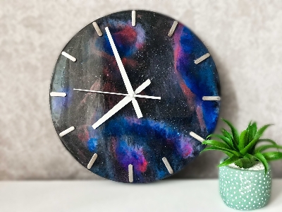 Название данных часов говорит само за себя. Для многих людей космос что-то прекрасное, но недостижимое. Мы постарались максимально создать тот самый завораживающий пейзаж далекого космоса. Яркость основных часов зависит от освещения в комнате. Идеально подходят для тех, кто устал от стандартных композиций из смолы. Основной цвет черный, дополнительные: Синий, бордовый, фиолетовый. Использован метод многослойной заливки, что обеспечивает дополнительный эффект глубины. Немного о циферблате, сделан вручную с нержавеющей стали, предварительно обработан. Часовой механизм з плавающим ходом стрелки. Изделие покрыто нетоксичным лаком, который обеспечивает защиту эпоксидной смолы от ультрафиолетовых лучей. Отправка часов осуществляется в нестандартной коробке, с наполнителем идеален вариант, если вы покупаете часы на подарок. Забрали на почте – подарили. Теперь не нужно отдельно покупать подарок, потом стоять в очередях, для его упаковки! Можем изготовить на заказ любой цвет, форма, размеры.Комплектация: Упаковочная коробка, часы, батарейка, крепёж.