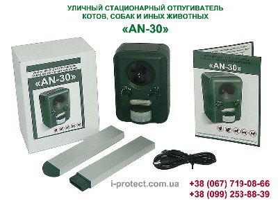 Эффективная защита вашей территории от любых собак, а также кошек, лисиц, куниц, зайцев и пернатых, всё это благодаря отпугивателю an 30. Устраняет животных ультразвуком и световыми вспышками. Прибор применяют для отсутствия животных в вашем саду, огороде, дворе, но ничто не ограничивает и другие сценарии использования. Питается как от розетки, так и от трех батареек типа D/R20/LR20. Устройство оснащено датчиком движения с углом обзора в 90° и дальностью действия в 7 метров. Когда в этой зоне регистрируется какое-либо движение, то включается ультразвуковой динамик. Он формирует сигналы с громкостью не менее 110 децибел, а это где-то на уровне максимально мощного крика младенца. Однако вам при этом не нужно затыкать уши, ведь они у нас не могут воспринимать ультразвук, в отличие от большинства видов животных, в том числе и собак. Громкость сигналов напугает четвероногого, а еще к нему добавятся пять вспышек стробоскопа. Если после такой серии в зоне действия датчика движения уже не будет перемещений объектов, то устройство выключится и будет «ожидать» следующей «жертвы». Дальность действия ультразвуковых волн прибора составляет не меньше 75 кв. метров.Бесплатная доставка товара по Украине-без предоплаты.Гарантия 1 год.Гарантийное и послегарантийное обслуживание.Подробнее по телефону 0677190866, 0992538839 или на сайте iprotect.in.ua, , ссылка на товар https://iprotect.in.ua/p/944639738-ulichnyy-ultrazvukovoy-otpugivatel-sobak-kotov-i-inyh-zhivotnyh-an-30/