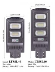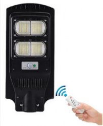 Торгова компанія Profishef пропонує вуличні світильники на сонячній батареї Solar LED Street Light 60W, керовані пультом. Світильник включається автоматично після настання темряви з яскравістю 50%. А після виявлення рухомого об'єкту на відстані 10 м яскравість освітлення збільшується до 100%. Через 15 секунд після припинення руху яскравість знову знижується до 50%.Вбудовано інтелектуальне управління таймером. Освітлення автоматично вмикається в темряві, а яскравість підсвічування автоматично регулюється з тимчасовим поділом.