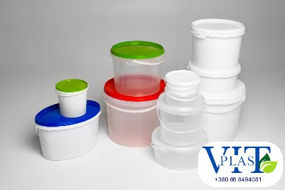 Ми виготовляємо пластикові відра в білому і прозорому кольорі - 0,5 літра (200 штук в упаковці), 1 літр (200 шт.), 3 літра (60 шт), 3 л низьке (50 шт), 5 літрів (50 шт), 10 літрів (40 шт.).