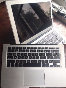 В ремонте не был, на протяжении всего периода использования носится в защитном чехле. Работает отлично, всё летает, никаких проблем не было. Покупался год назад в Гонконге в официальном Apple Store. На клавиатуре была выгравирована русская раскладка, помимо латинской.