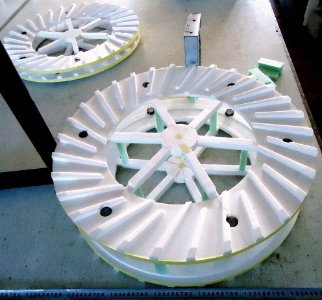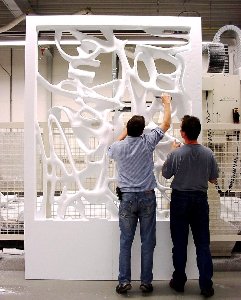 Оснастку и разовые модели режут из пенополистирола на 3D-фрезерах, изготовление пресс-форм для пенопластовых моделей часто выполняют точным литьем по ЛГМ-процессу, который обладает значительным потенциалом, как метод копирования в металле конструкций природы - примеров совершенства и ресурсосбережения. Эту технологию называют литьем по газифицируемым (пенопластовым) моделям (ЛГМ). Литье и последующее затвердевание отливки по этой технологии происходит путем замещения литейной модели в песчаной форме заливаемым расплавом металла. При моделировании легковесных отливок и выборе аналогов среди природных структур, отмечается известный факт распространения спиральных элементов среди конструкций природы, в частности с характеристиками, относящимися к понятию «золотого сечения», которое восходит из глубокой древности. 3D-принтер и 3D-фрезер изготовляет полимерные, пенополимерные, пенопластовые и пластмассовые изделия, детали, запчасти.