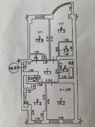 Три раздельные комнаты, отдельная кухня, гардеробные, 2 санузла.