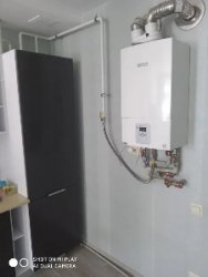 Автономное газовое отопление, и горячее водоснабжение при помощи двухконтурного газового котла "Bosh". Дополнительно есть электрический бойлер.