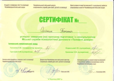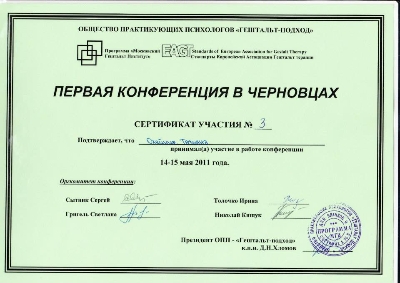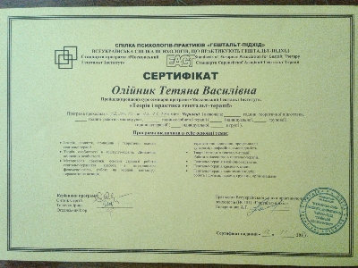 Завершила другий рівень підготовки гештальт-терапевтів.
