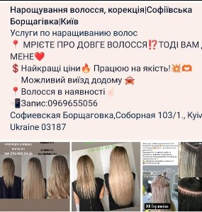 Дорогие девушки,хотите иметь длинные и красивые волосы?Тогда Вам ко мне! Записываетесь на прекрасную процедуру наращивание,коррекция волос!!! Волосы помогу подобрать.Выбор размера капсул под каждого клиента.Буду рада сделать Вас неотразимыми! Наращивание 1900грн, коррекция 2300грн за 100грамм. 096-965-50-56Популярные объявления